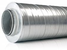 Circular sound attenuator in galvanized steel with insulation shell thickness of 50 or 100 mm wrapped in a glass film for air speeds up to 20 m / s
